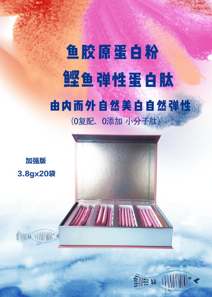 ◇ 產(chǎn)品簡介:鰹魚彈性蛋白進口自日本、魚膠原蛋白提取自深海鱈魚皮、具有美白、收縮毛孔、嫩膚、恢復皮膚彈性、抗氧化、延緩肌膚衰老的作用。◇ 食用周期:早晚各一袋。(早上空腹食用,晚上睡前半小時食用)